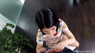 Młoda ładna brunetka klęczy przed facetem i obciąga mu kutasa jak profesjonalna dziwka po czym dostaje kilka głębokich pchnięć w swoją mokrą pizdę, zobacz!