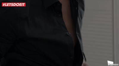 Dojrzały facet chce tylko rozmawiać z młodą brunetką w pończochach i bieliźnie, ale dziwka nie wytrzymuje, uwodzi go, dostaje minetę i jebanie dużym chujem
