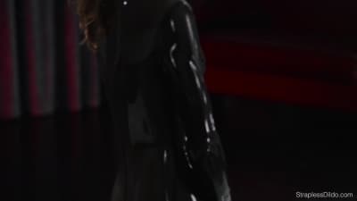 Maria uwielbia udawać, że ma kutasa i dlatego kupiła lateksowy kostium z zamontowanym wielkim chujem w środku! Zobacz jak dziwka ćwiczy jebanie!