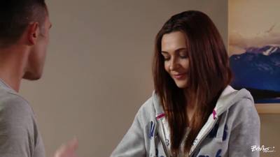Brunetka właśnie wyszła z kąpieli i zawinięta w ręcznik podnieca swojego faceta, który korzysta z okazji, daje jej chuja do possania i pierdoli zmysłowo.