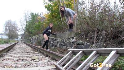 Dwanaście minut scen z laskami, co sikają w różnych miejscach już czeka na ciebie w tym filmie wideo. Nie zabraknie kolei, samochodów i samolotu.