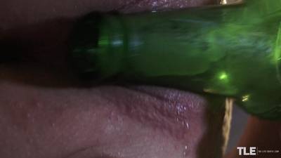 Stella Cardo, sprośna dziwka z dużymi cyckami nie zważa, że jest w męskiej toalecie! Musi się pierdolić tu i teraz i zrobi to za pomocą butelki, zobacz!