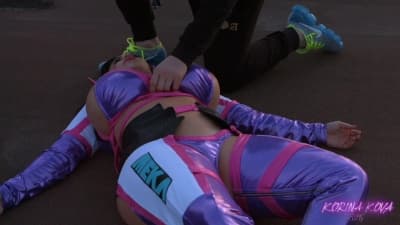 To filmowa scena kina akcji, w której cycatą Korinę Kova w stroju cosplay ratuje James Deen, podwiesza na linach i pierdoli głęboko mackami jako monstrum!