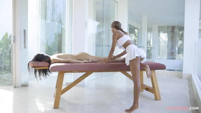 Młoda Hinduska Putri Cinta zdejmuje ubranie i daje delikatny, erotyczny masaż ciała swojej azjatyckiej klientce, nie przegap tej zmysłowej sceny!
