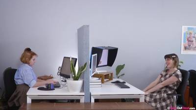 Dwie sekretarki siedzą w biurze naprzeciwko siebie, oddzielone ekranem. Obie są podniecone i rozbierają się, żeby masturbować się zabawkami, każda osobno!