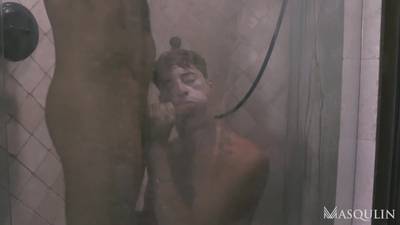 Jack i Taylor już pod prysznicem zaczęli obciągać sobie kutasy i wsadzać sobie dildo w dupy a w sypialni będąsię pierdolić intensywnie w głębokim analu.