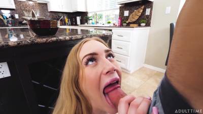 Emma będzie ssać, podczas gdy jej daronne jest w tym samym pokoju, potem da się wyruchać w salonie, odsłaniając uroczą białą dupkę.