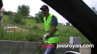 Młody facet hetero ma popsute auto i jest bez kasy, więc za pomoc mechanika obciągnie mu chuja na polu winogron a spermę wyssie w samochodzie, zobacz!