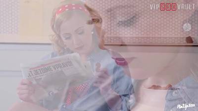 Cofamy się w lata pięćdziesiąte! Słodka mamuśka, blondynka Bibi Fox karmi męża w domu po pracy i zaraz potem daje się wypierdolić od tyłu i łyka spermę!