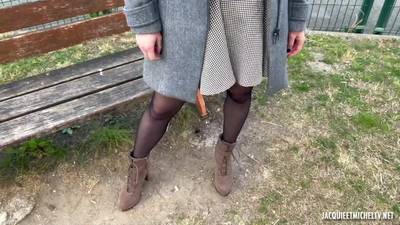 Młoda ładna dziewczyna spotkana w parku daje się namówić na rozebranie do naga, ale na dworze jest zimno, więc striptease zrobi w domu i pokaże cycki!