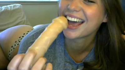Niewinnie wyglądająca dziewczyna okazuje się być sprośną amatorką! Będzie obciągała swoje dildo po masturbowaniu nim swojej pizdy i zrobi to przed kamerą!