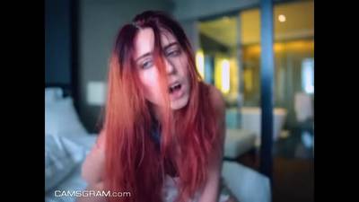 Ładna dziwka z rudymi włosami jest mocno podniecona dlatego nie zdejmuje sukienki tylko ją unosi, żeby móc wygodnie masturbować palcami głodną pizdę!