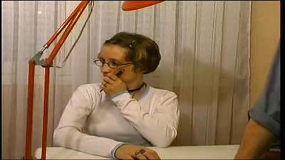 Studentka uczy się do sesji kiedy wchodzi jej wykładowca i oferuje pomoc. Szybko zaczynają się rżnąć, wtedy dołącza młody kolega i mamy sprośny trójkąt!
