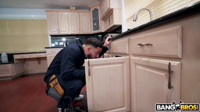Valerie Steel wezwała hydraulika, żeby naprawił zlew, ale chodzi jej tylko o ruchanie! Zobacz jak mu płaci ssaniem chuja sprośnym pierdoleniem w pozycjach!