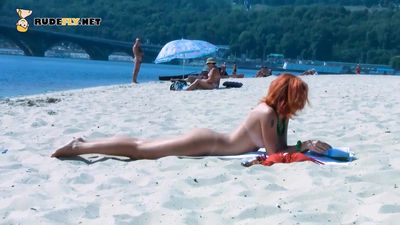 Gorąca rudowłosa nastolatka lubi spędzać dzień na plaży nudystów, opalać nagie ciało i schładzać je czasem wskakując do wody, zobacz koniecznie!