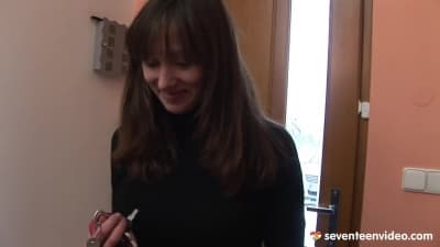 Nastoletnia brunetka poszła na spacer z psem i dała się poderwać facetowi, który wylizał jej pizdę, wypierdolił właśnie na pieska i spuścił się do środka!