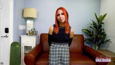 Keyton Keem, rudowłosa dziewczyna przyszła na porno casting, żeby po krótkiej rozmowie rozebrać się do naga, obciągnąć kutasa i dać wyruchać w POV.