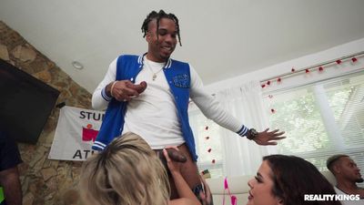 Keisha Grey i Luna Luxe są napalone, gdy tylko widzą, że Kaby Snow otworzył drzwi, wchodzą i zaczynają ssać jego wielkiego czarnego kutasa na oczach wszystkich jego braci.
