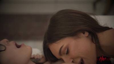 Dwie nastoletnie lesbijki o imionach April Olsen i Leana Lovings oddają się napalonym cipkom podczas gorącej sesji, jakby były zakochanymi lesbijkami
