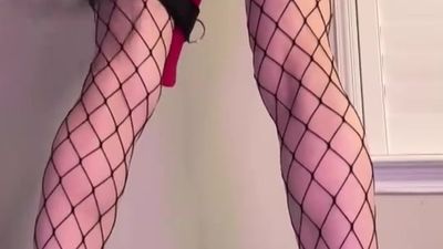 Blondynka stoi z ogromną zabawką wepchniętą w jej cipkę, a jej partner biczuje ją, aby sprawić jej więcej przyjemności. Widać, że lubi być łaskotana.