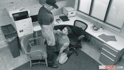 Ten strażnik DILF złapał tego mężczyznę na kradzieży! Mężczyzna błaga go, by nie wzywał policji i by odzyskać wolność, klęka na kolana, by possać kutasa DILF-a