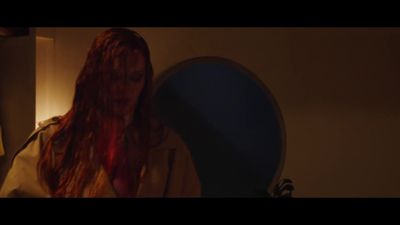 Wet Heidi Priestess, pod swoim eleganckim płaszczem trenczowym, nosi prowokacyjną niebieską bieliznę, czując się seksownie i pewnie, by uwieść swojego mężczyznę po jego przybyciu.