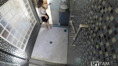 Nastoletnia brunetka Nina North pierdoli się z kochankiem pod prysznicem wyjątkowo namiętnie. Obciąga go i dostaje jebanie w pozycjach jak dziwka.