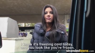 Ładna brunetka wsiada do auta, które zatrzymała przy ulicy. Jest zimno i chce jechać do domu, ale musi za podwózkę zapłacić seksem z kierowcą, zobacz!